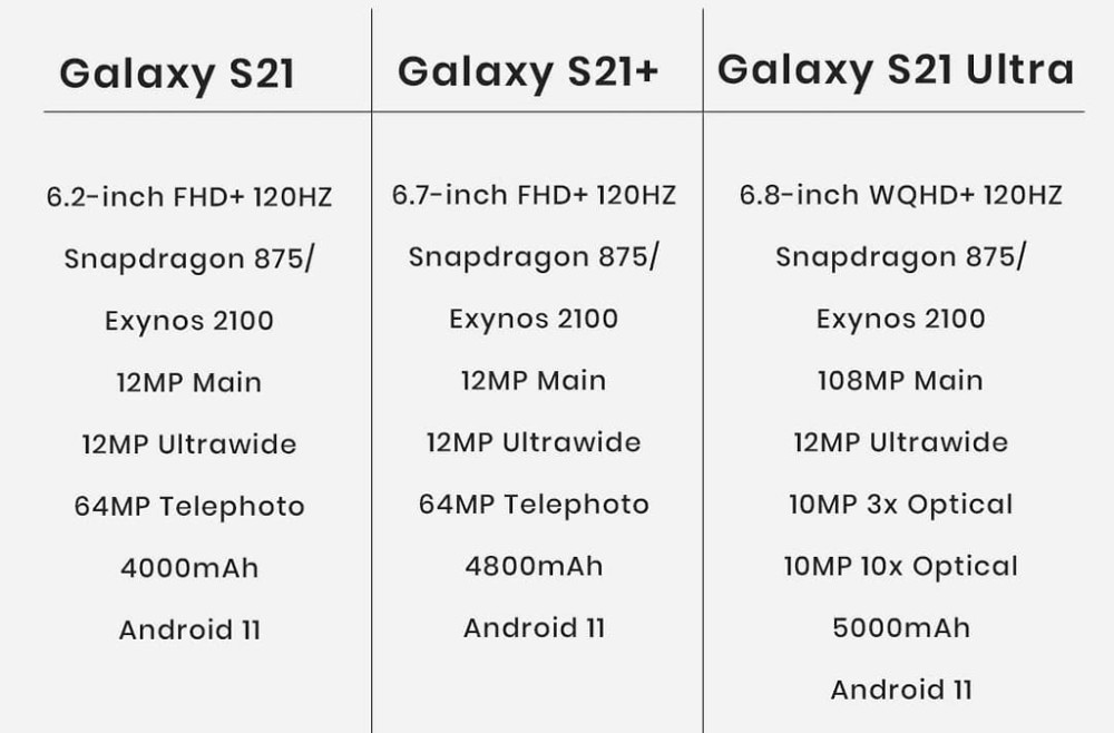 就如 s21 ultra,s21 和 s21+ 都会有 zoom lock 功能来稳定 30 倍远摄的画面,同时也会有同时预览所有相机的「导演模式」。 最后就是两款 s21 在功能上的差异了,galaxy s21 和 s21+ 不光是上述在尺寸和电池上的不同,比较大的 s21+ 更有支.